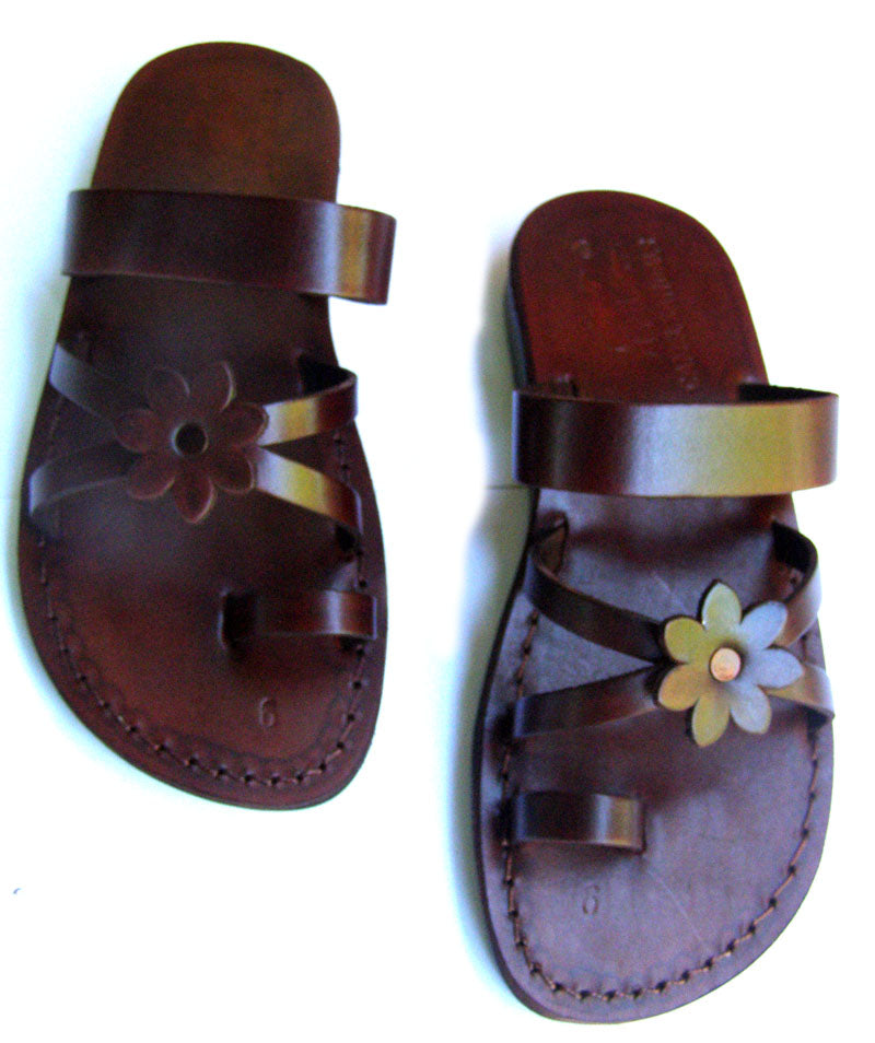 Elegant Flip-Flops with Flower on the toes. Special and cool.High-quality leather handmade sandals with rubber sole.